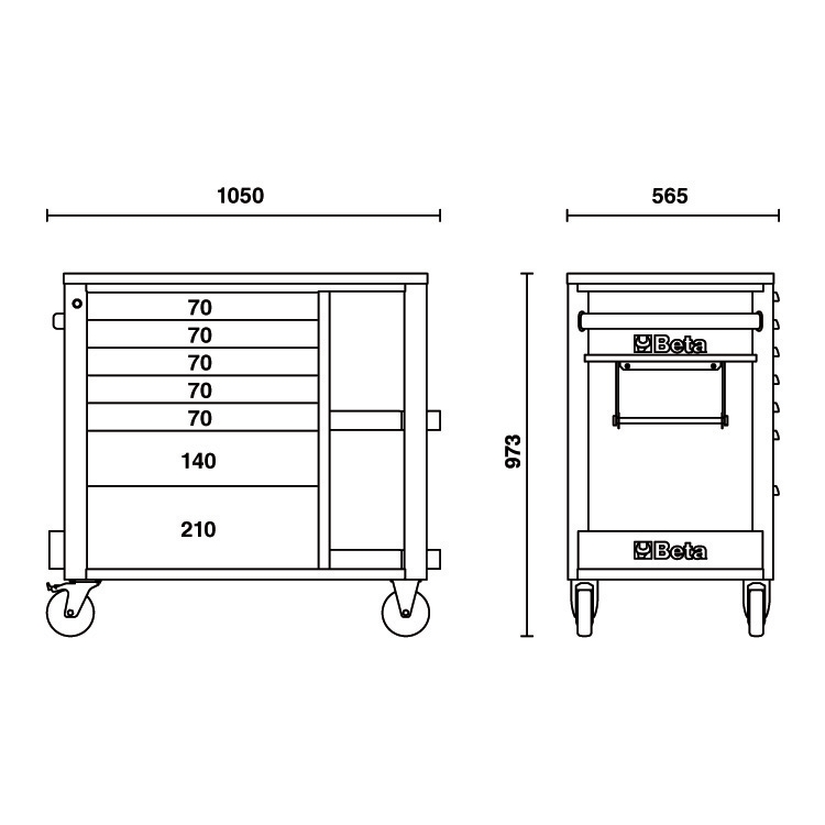 带侧架的7抽屉工具车 红
